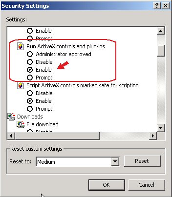 scroll down to the setting Run ActiveX controls and plug-ins.
